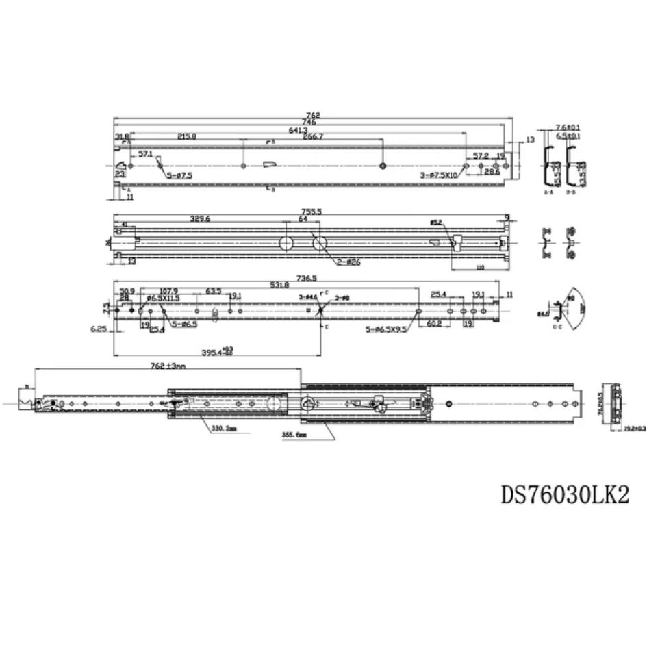 IntAfit Heavy Duty Locking Drawer Runner 227kg (500lbs) – 76 x 762mm