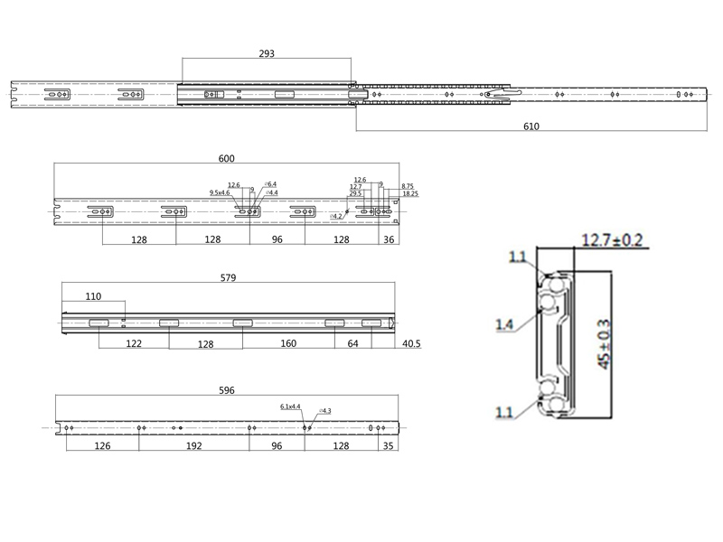 Series 46 Ball Bearing Drawer Runner 45kg – 45 x 600mm