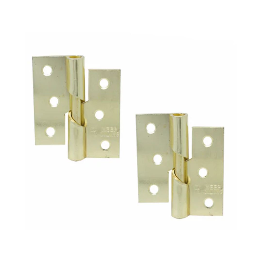 Rising Butt Hinge 75 x 75 x 2mm SKU: HW04332 Features Height: 75mm Width: 75mm Thickness: 2mm Handed: Right Material: Steel Finish: Brass Plated Use: Interior Trade Enquiry Buy Now Specification Sheet