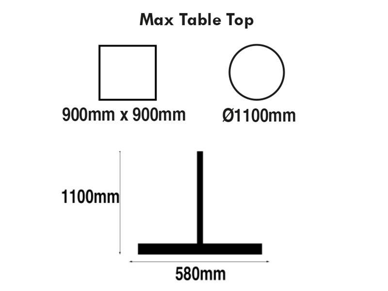 Golden Gate Black Base & Brushed Stainless Steel Column SKU: TF30092BK & TR31292 Specifications Base Shape: Flat Round Base Finish: Black Column Finish: Stainless Steel Overall Height: 1100mm Base Size: 580mm Column Size: 76 x 1060mm Weight: 21.3kg Max Round Top Size: 650mm Pack Contains TF30092BK: 1 x Round Base TR31292: 1 x Table Column Trade Enquiry Buy Now Specification Sheet