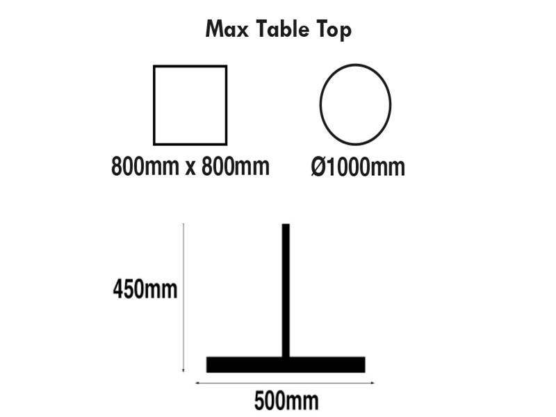 - Max Round Top Size: 700mm