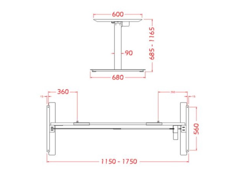 - Lift Range: 685-1165mm and 2 sections upright, the display includes the 25mm top thickness